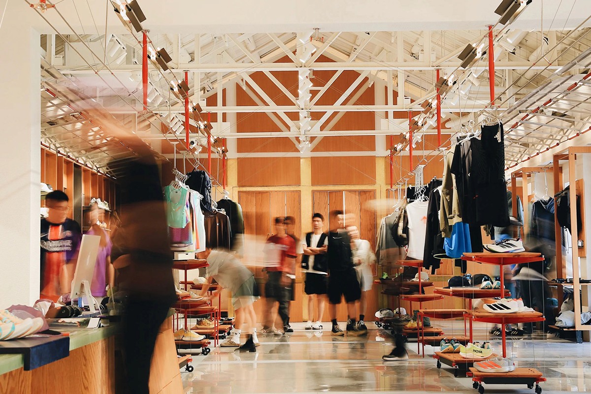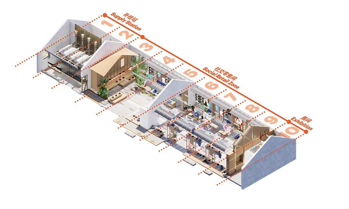 This feeling of "home" is determined by the form and feel of the unit itself: a 1920s ten-bay service building on Yuyuan Road. Rather than correcting the existing imperfections—non-plumb walls and irregular timber trusses—SOPA retained them as a foundational texture, creating a warm, authentic backdrop that resonates with the distinct, design-led ethos of brands like Soar and Ciele.