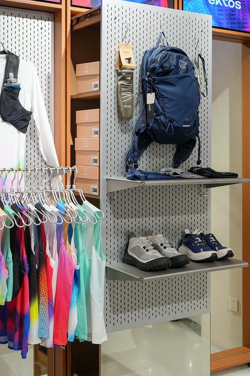 Curated Clarity (For Soar & Ciele): Design-led running brands like Soar and Ciele require an environment that feels "relaxed and curated," not overwhelming. Society Particular (SOPA)’s use of a minimal suspension grid creates a gallery-like focus on the textile and color, stripping away the visual noise of standard sports retail.